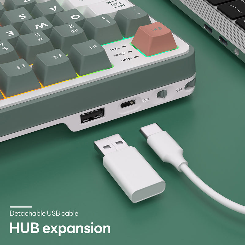 De draadloze modellen van de Royal Kludge RKS98 zijn uitgerust met een krachtige 3750 mAh batterij, wat zorgt voor indrukwekkende batterijprestaties. Met deze royale capaciteit biedt de RKS98 draadloze gebruikers een langdurige en betrouwbare stroomvoorziening. Zelfs tijdens langdurige typsessies of intense gaming-sessies kunnen gebruikers vertrouwen op de duurzaamheid van de batterij, waardoor ze ononderbroken kunnen blijven werken of spelen zonder zich zorgen te hoeven maken over regelmatig opladen. Deze robuuste batterijprestaties maken de RKS98 een ideale keuze voor gebruikers die op zoek zijn naar een draadloos toetsenbord dat zowel krachtig als betrouwbaar is.