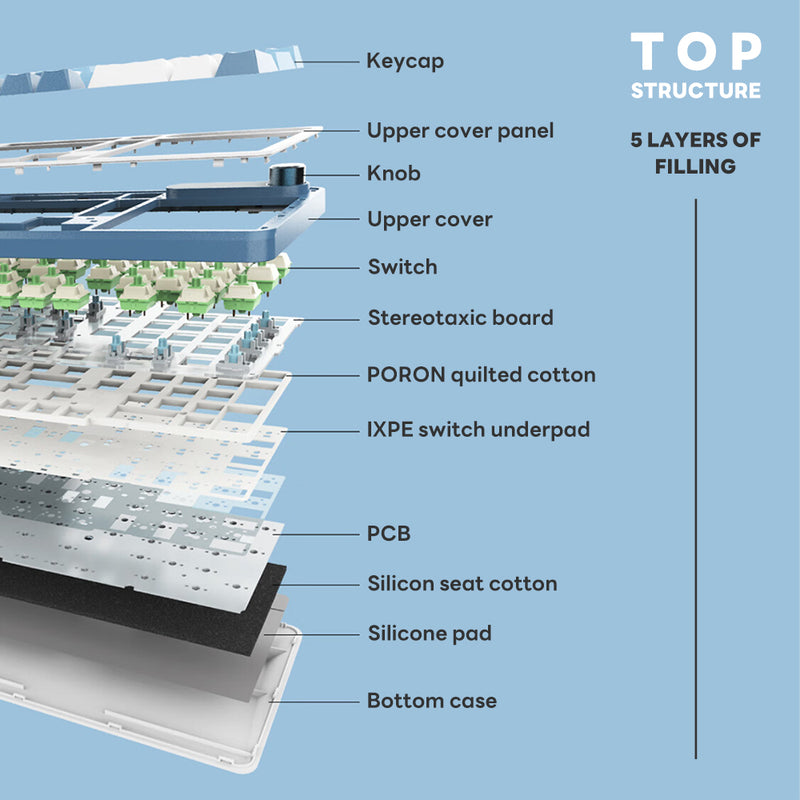 Het Royal Kludge RKS98 toetsenbord is vervaardigd met oog voor detail en duurzaamheid. De slanke aluminium behuizing geeft het toetsenbord een moderne uitstraling die perfect past bij elke setup. Met zijn solide constructie en hoogwaardige materialen is de RKS98 gebouwd om lang mee te gaan, zelfs bij intensief gebruik.